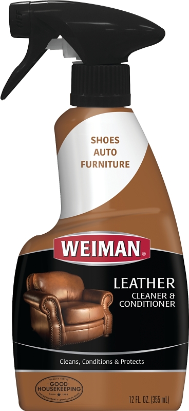 Restore suppleness and sheen to leather surfaces with Weiman leather cleaner and conditioner spray. This formula moisturizes with natural oils and protects against UV rays to keep furniture, car interiors, purses and more looking like new.