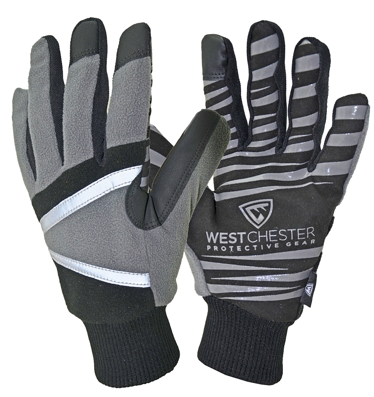 West Chester Winter Gloves, Hi-Dexterity, Insulated, XL, Nylon/Polyester/Polyurethane/PVC/Spandex, Black/Gray, Thumb Type: Reinforced, Wing, Cuff Type: Hook and Loop, Wrist Strap, Lined/Unlined: Lined, Lining Material: Polyester, 10-3/8 in L, Resists: Water