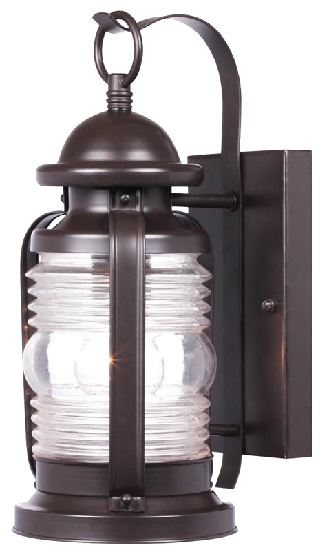 Light up your home with the Weatherby one light wall lantern. With a classic jelly jar style clear glass shade and a weathered bronze finish, this fixture has a nautical inspired design that is compatible with a variety of home styles. Install this lantern above an entryway or by your garage door for a bright pool of light. You can also use it as a welcoming accent for your porch, deck, patio or balcony. No matter where you place it, you will enjoy the lantern’s bright light and traditional look.