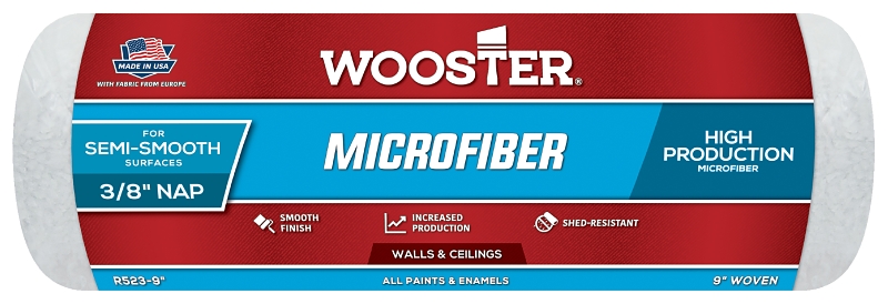 WOOSTER R523-9 Roller Cover, All Paints Paint, 3/8 in Thick Nap, Microfiber Cover, Green