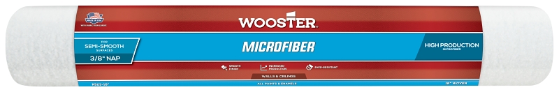 Wooster R523-18 Roller Cover, 3/8 in Thick Nap, 18 in L, Microfiber Cover