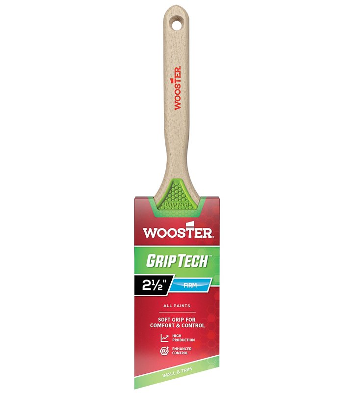 Wooster GripTech Paint Brush, Brush Type: Angle, 2-7/8 in L Bristle, Polyester Bristle, Sash Handle, 2-1/2 in W, 5/8 in Thick