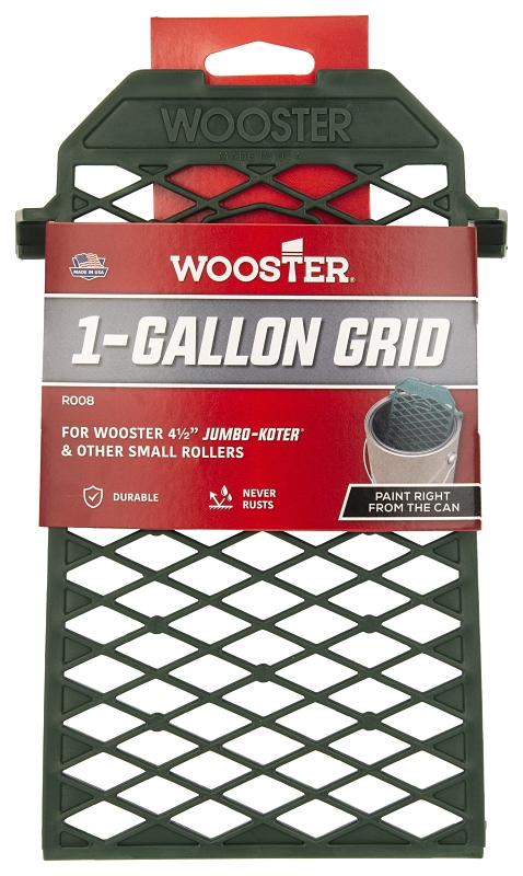 Smaller paint jobs are more efficient with a grid, too. The 1 gal grid is designed for use with all rollers 4-1/2 in or smaller, including Wooster Jumbo-Koter® minis. A convenient slot built into the grid holds the roller frame grip in place.