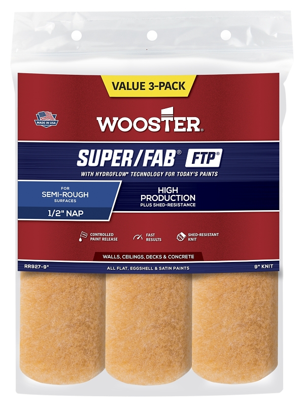 Wooster RR927-9 Roller Cover, 1/2 in Thick Nap, 9 in L, Knit Fabric Cover, Lager