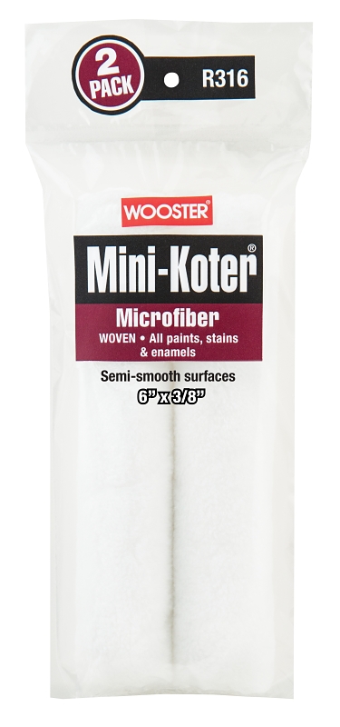 Wooster R316-6 Mini Roller Cover, 3/8 in Thick Nap, 6 in L, Microfiber Cover