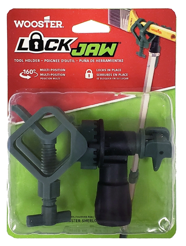 Securely holds a roller frame, paintbrush, scraper, flashlight and more (maximum diameter 1-3/8 in or 35 mm). Locks in 9 positions, fully adjustable for virtually any angle, range of 160 deg. Durable fiberglass-reinforced nylon and polypropylene construction. For use with threaded or Sherlock GT® extension poles.