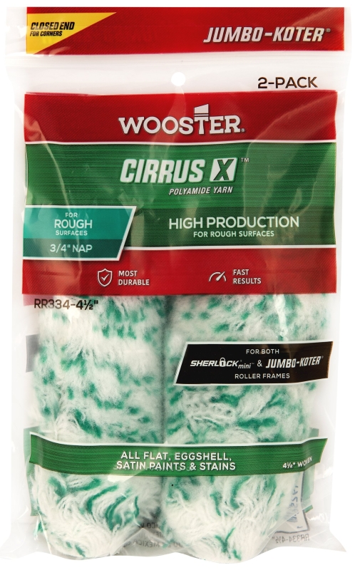Wooster RR334-4 1/2 Mini Roller Cover, 3/4 in Thick Nap, 4-1/2 in L, Fabric Cover, Green/White