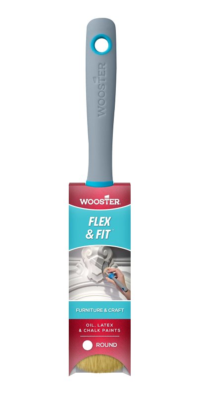 Wooster Flex and Fit Chalk Paint Brush, Brush Type: Round, 2 in L Bristle, Polyester Bristle, Rubber Handle, Flexible, Soft-Grip Handle, 1-1/2 in W