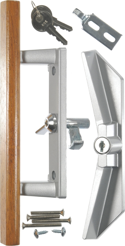 Wright Products Door Handle, Locking, Reversible, Aluminum/Wood, Oak, Includes: Key Locking Unit