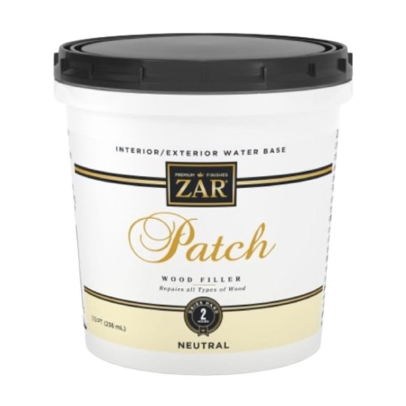 ZAR® wood patch is a latex compound that both contractors and savvy do-it-yourselfers rely on to fill nail holes and repair cracks, gouges, broken corners and chipped edges on wood surfaces. It’s excellent for a variety of uses because it only shrinks a little and can be nailed, sawed, sanded or drilled. ZAR® wood patch can be used indoors or outdoors and accepts paint, varnish, shellac, polyurethanes and stains. In fact, it actually accepts stain more readily than conventional wood patching compounds.