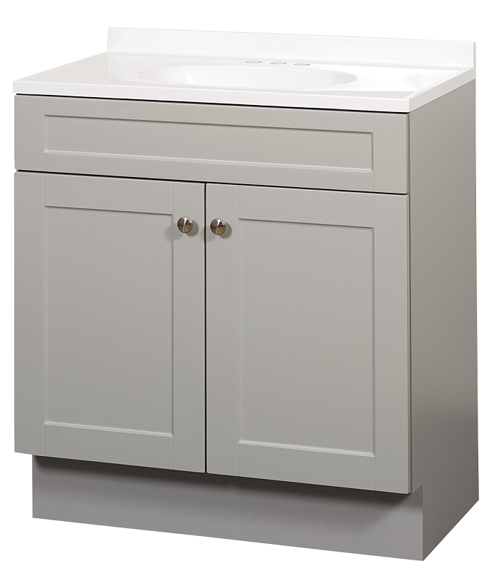 Zenna Home SBC36GY 2-Door Shaker Vanity with Top, Wood, Cool Gray, Cultured Marble Sink, White Sink, 1/EA