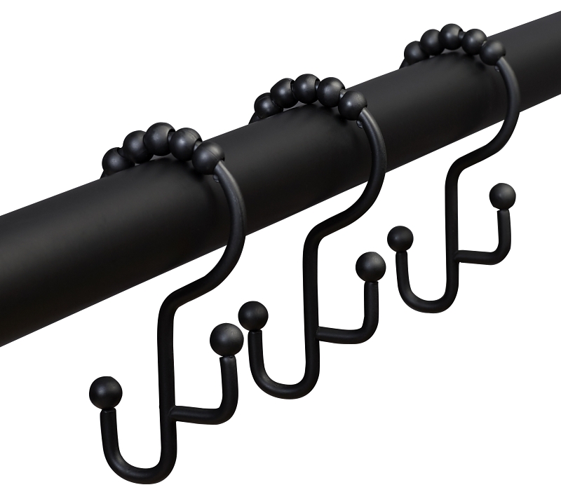 Zenna Home Shower Curtain Hook, Double Roller, Stainless Steel, Black, Matte